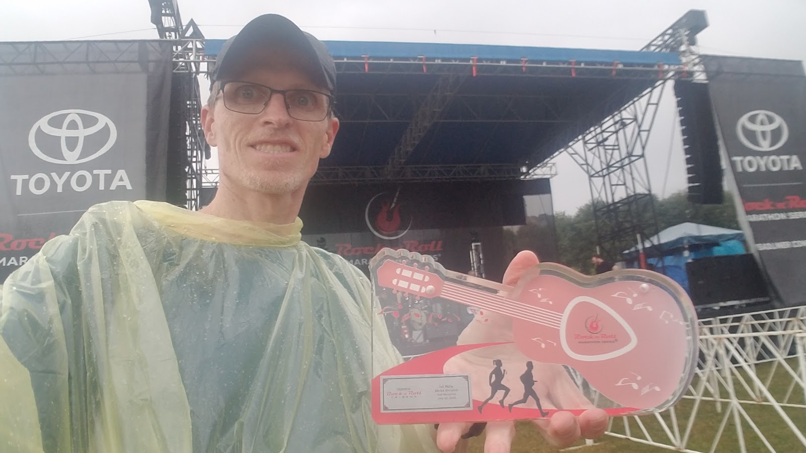 Miles 1 through 3: As soon as I crossed the start line, it started to rain. It was a welcome relief and I thought to myself that this was going to be fun! However, soon thereafter I had to do a huge amount of weaving. 8 to 10 minute milers who had started ahead of me were running three of four abreast. There was even a pack of 10 runners with matching t-shirts running not faster than 12 minute miles. No corral enforcement = people all wanting and getting to start in front. I think RnR needs to have some enforcement especially for corrals 1 to 5. Wasted some energy weaving and surging over the first mile. However, on the bright side, it was raining and it felt fantastic. My sunglasses were somewhat blurred by the rain, so it was difficult to see my watch. I decided to just run by feel. After 100+ races, I am getting more comfortable with "feel" racing! 6:42/mile